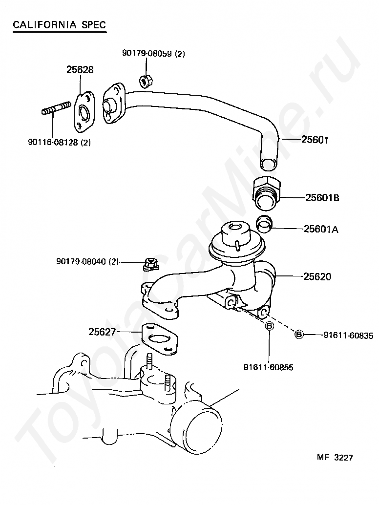 Система рециркуляции газов TOYOTA 4-RUNNER TRUCK, 1983/09 - 1984/08, 2,4 литра, дизель, LOW DECK (STANDARD DECK), DELUX SPECIFICATION, LN65, механика, МКПП, 5 скоростей