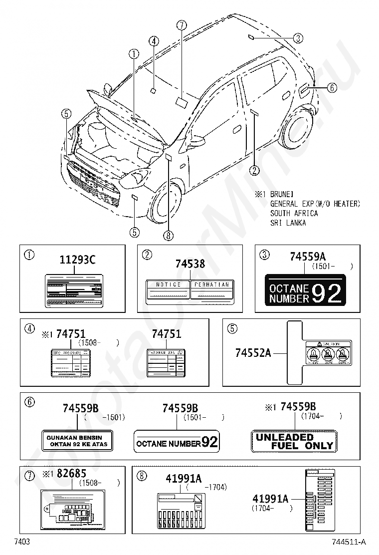 Информационные таблички TOYOTA AGYA/WIGO, 2017/04 - 2025, 1 литр, HIGH SIDE PICKUP, B100, автомат