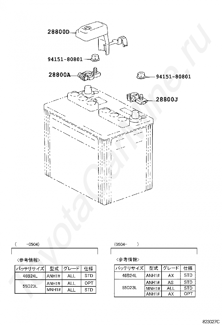 Аккумулятор и кабель TOYOTA ALPHARD G/V, 2005/04 - 2008/04, 3 литра, 24 клапана DOHC, EFI, MX SPECIFICATION, MNH15, АКПП, 5 скоростей