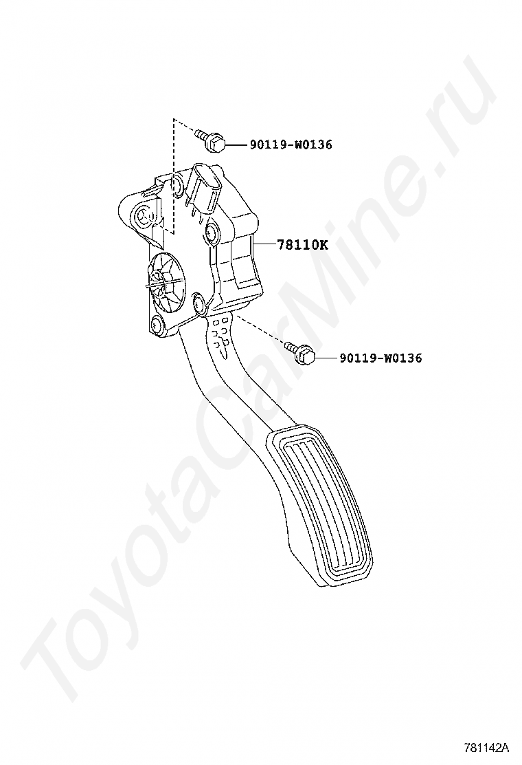 Педаль газа TOYOTA AURIS/HYBRID (UKP), 2008/11 - 2010/01, 1,3 литра, 16 клапанов DOHC, EFI, SOL TYPE, NRE150, механика, МКПП, 6 скоростей