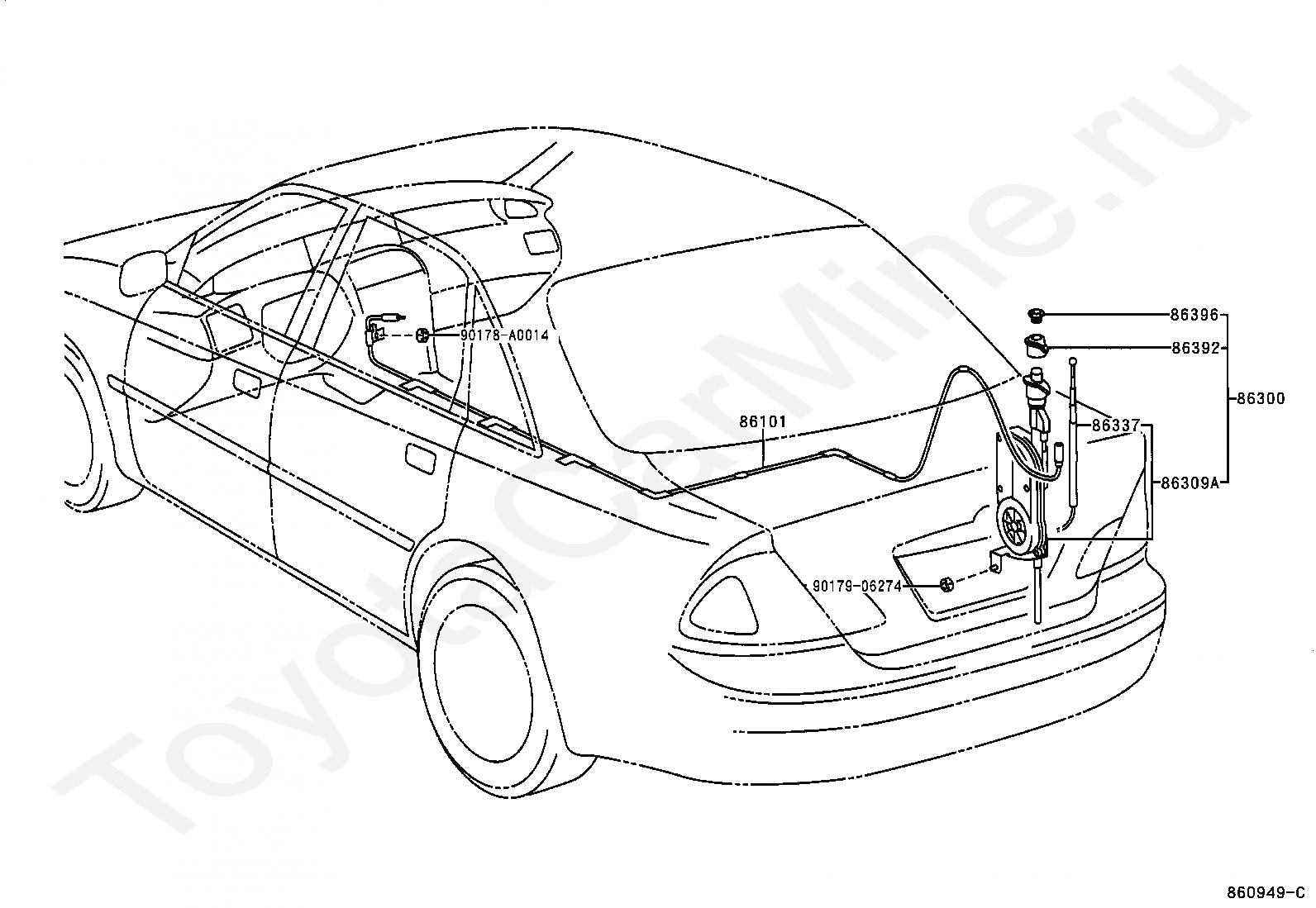 Антенна TOYOTA AVALON, 1999/08 - 2005/01, 3 литра, 24 клапана DOHC, EFI, XLS TYPE, MCX20