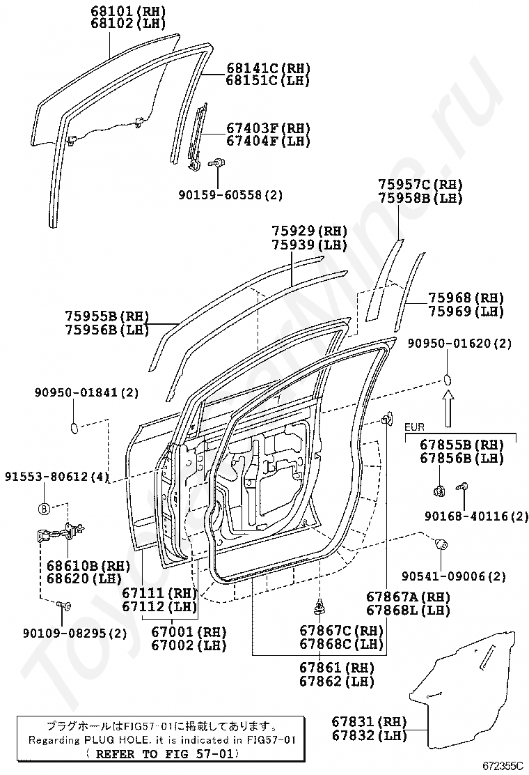 WEATHERSTRIP, FRONT DOOR GLASS, INNER RH