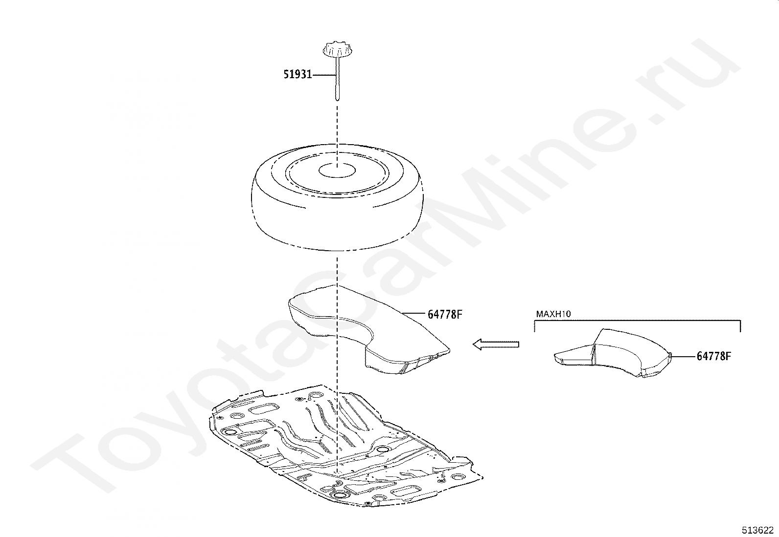 Болт запасного колеса TOYOTA C-HR, 2016/10 - 2025, 1,2 литра, 16 клапанов, DOHC, D4, NGX10, механика, МКПП, 6 скоростей
