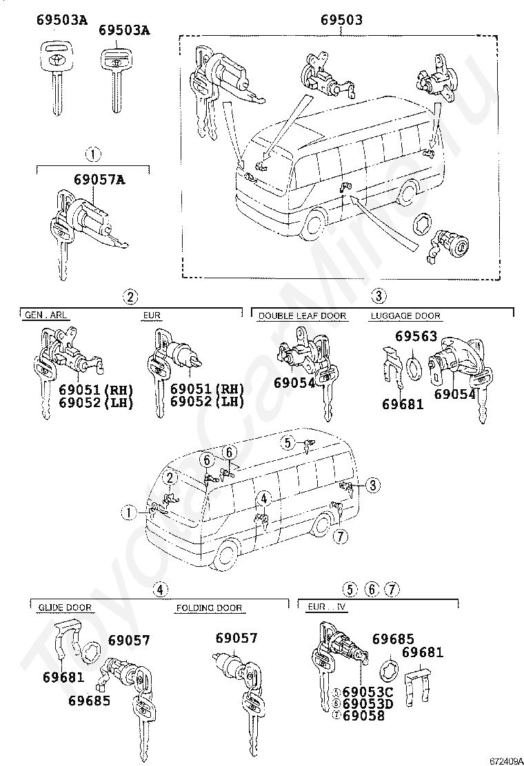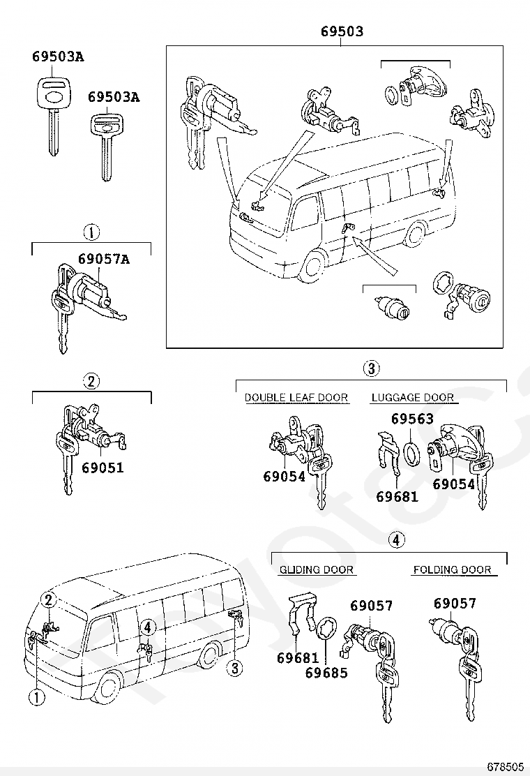 CYLINDER & KEY SET, BACK DOOR LOCK