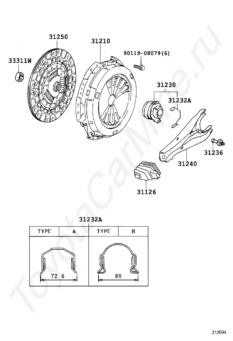 Сцепление TOYOTA COASTER (CHINA), 2013/01 - 2025, 2,7 литра, 32 клапана, DOHC, EFI, STANDARD TYPE, TRB53, механика