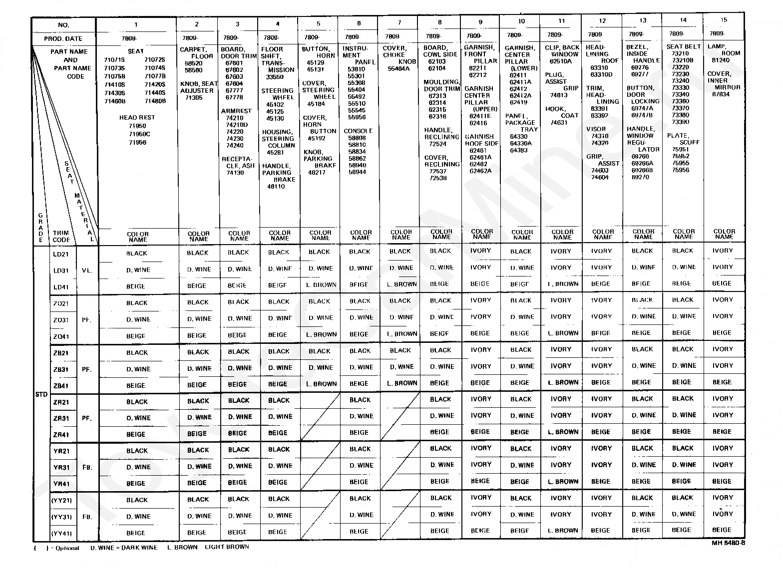 COLOR FINDING TABLE TOYOTA CORONA, 1978/09 - 1979/08, 1,6 литра, седан, STANDARD TYPE, RT130, механика, МКПП, 4 ступени