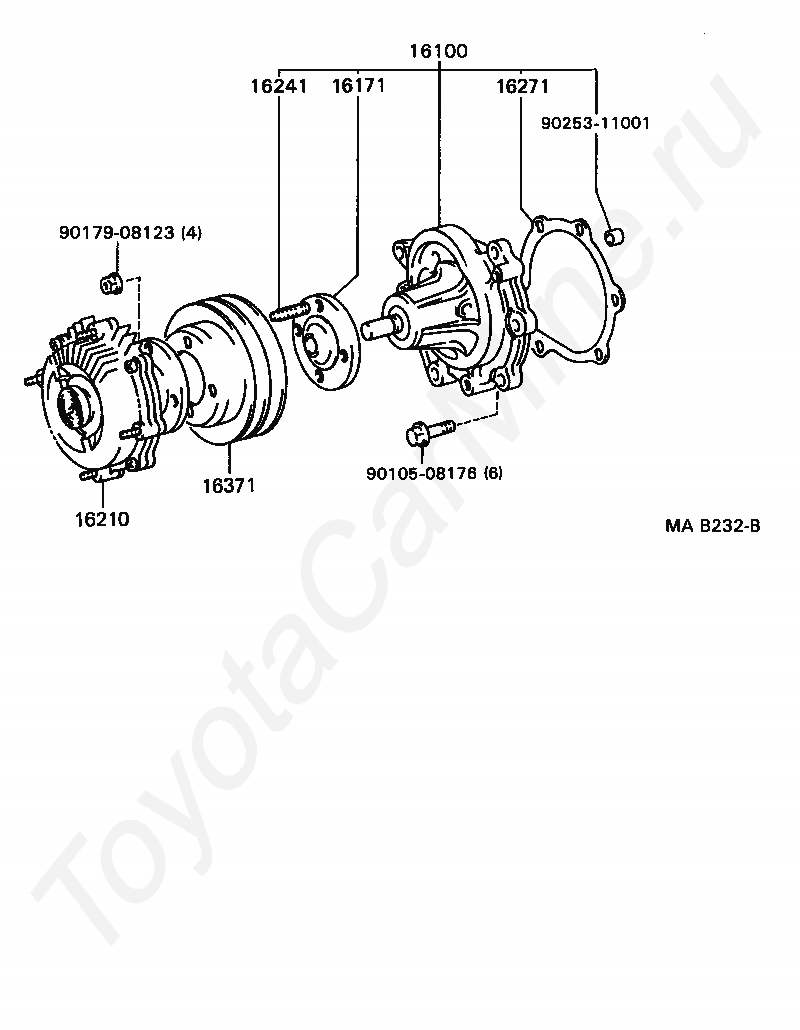 Водяная помпа TOYOTA CRESSIDA, 1988/08 - 1993/02, 2,4 литра, дизель, седан, GL SPECIFICATION, LX80, механика, МКПП, 5 скоростей