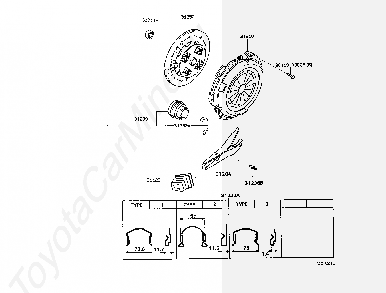 Сцепление TOYOTA CRESSIDA, 1988/08 - 1993/02, 2,4 литра, дизель, седан, GL SPECIFICATION, LX80, механика, МКПП, 5 скоростей