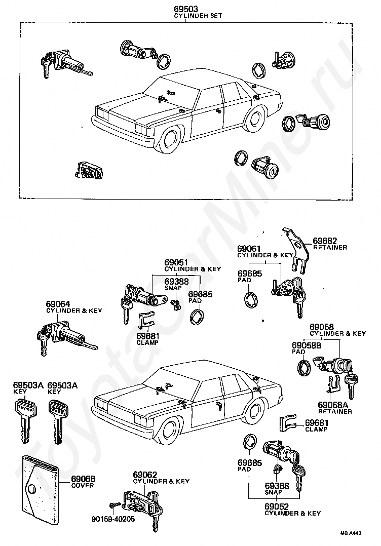 CYLINDER & KEY SET, DOOR LOCK, LH