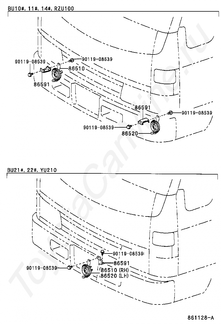 Гудок TOYOTA DYNA200, 1995/05 - 2002/12, 3,7 литра, дизель, BU141