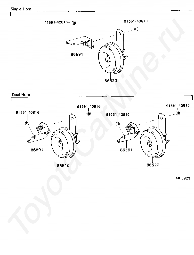 Гудок TOYOTA DYNA 200, 1987/08 - 1988/08, 3,4 литра, дизель, TRUCK (EXCLUDING DUMP TRUCK), BU85, МКПП, 5 скоростей