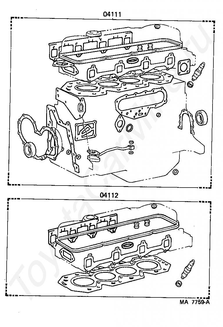 Комплект прокладок ДВС TOYOTA DYNA/TOYOACE, 1987/08 - 1988/08, 3 литра, дизель, TRUCK (EXCLUDING DUMP TRUCK), BU60, МКПП, 5 скоростей