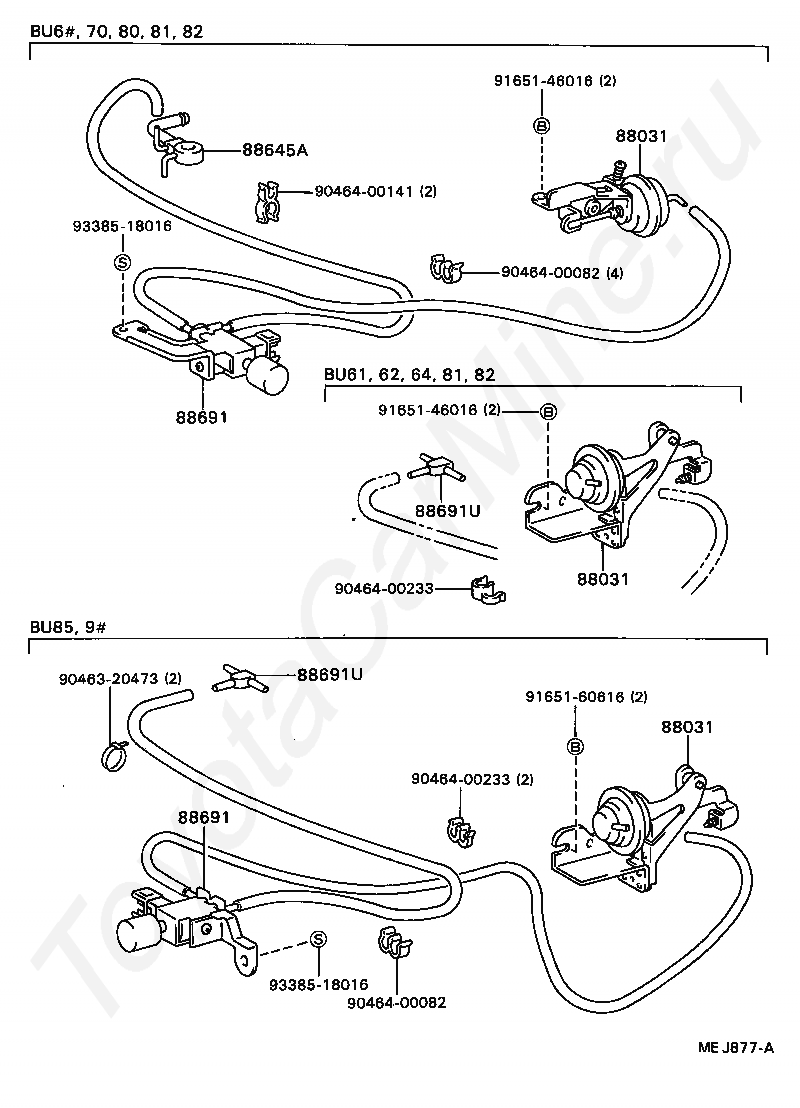 Кондиционер: вакуумные трубки TOYOTA DYNA/TOYOACE, 1987/08 - 1988/08, 3 литра, дизель, TRUCK (EXCLUDING DUMP TRUCK), BU60, МКПП, 5 скоростей