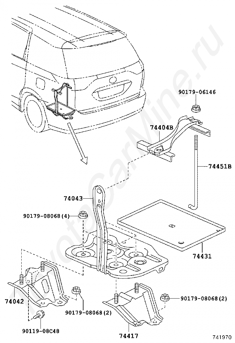 Крепеж аккумулятора TOYOTA ESTIMA HYBRID, 2006/06 - 2008/12, 2,4 литра, 16 клапанов DOHC, EFI, GRAMS, AHR20