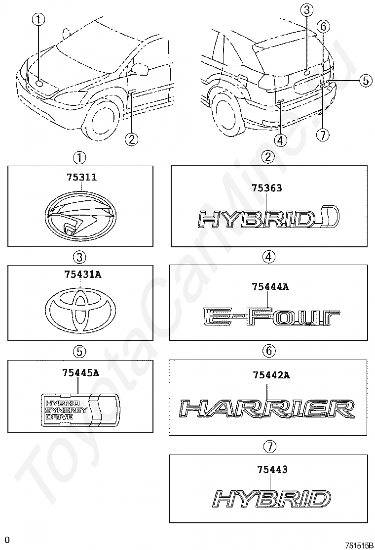 Эмблемы TOYOTA HARRIER HV, 2005/03 - 2012/06, 3,3 литра, 24 клапана, DOHC, EFI, фургон, MHU38