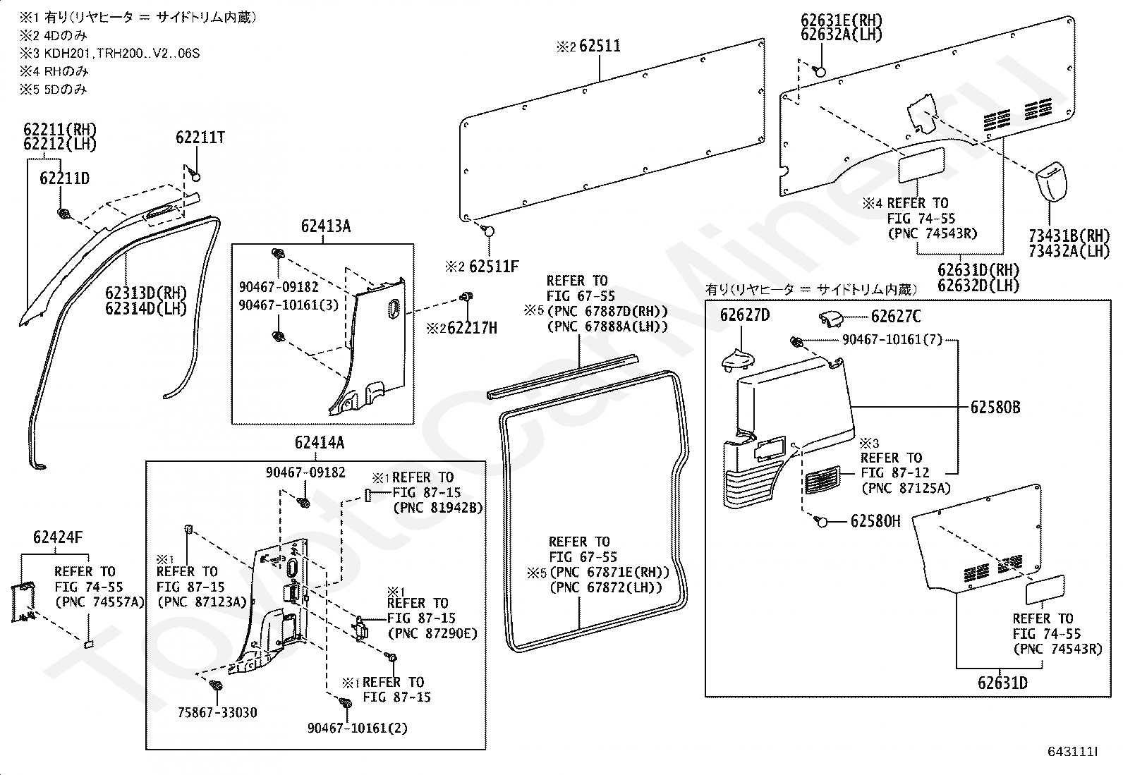 STANDARD ROOF 5 дверей боковое стекло 6-местный CBU 2WD 286WКод