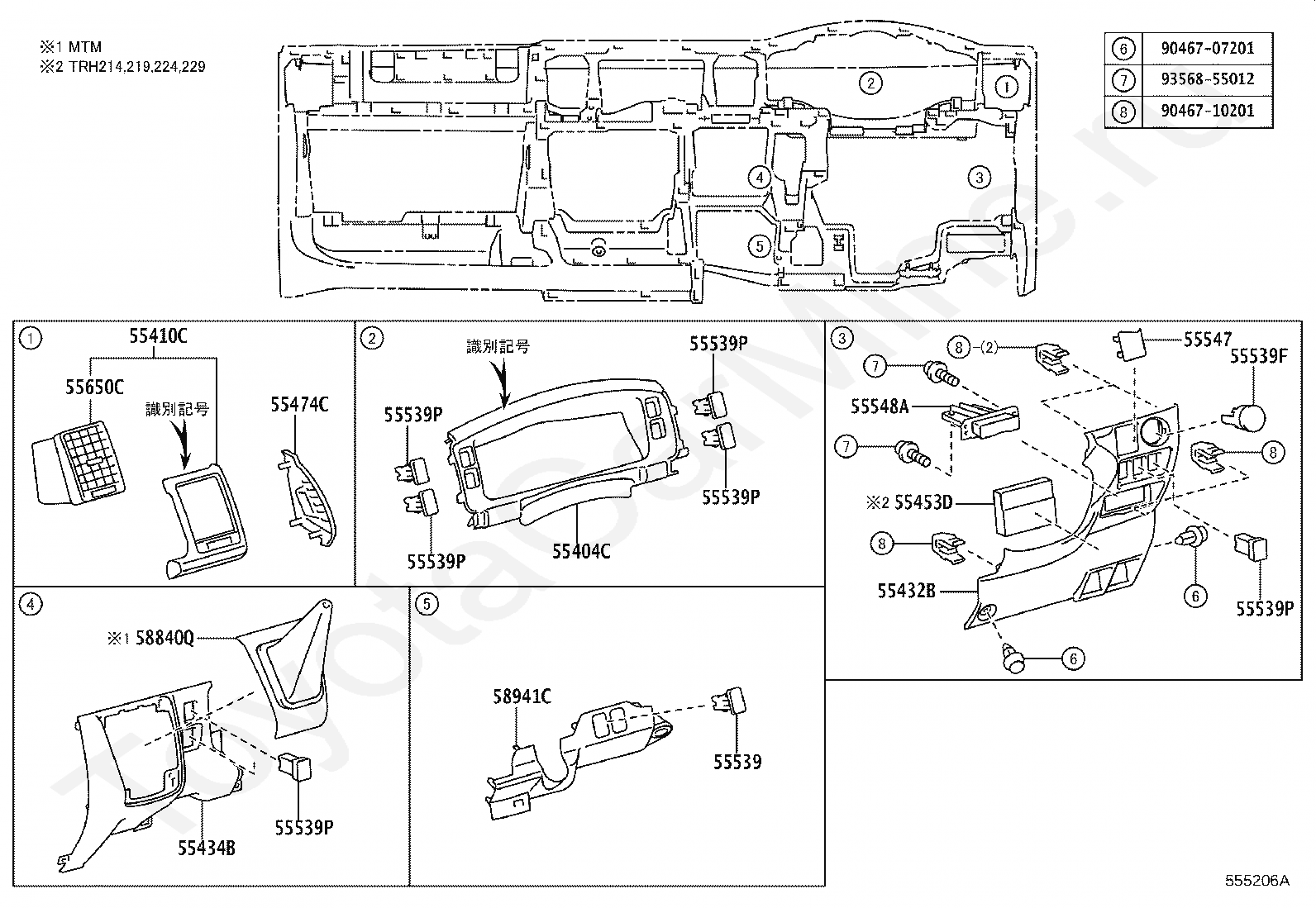Торпеда с бардачком TOYOTA HIACE/REGIUSACE, 2017/12 - 2025, 2,8 литра, турбо-дизель, V2 SPECIFICATION: VAN (SUPER-, SINGLE-, JUST-LOW), DELUX SPECIFICATION, GDH201, АКПП, 6 скоростей