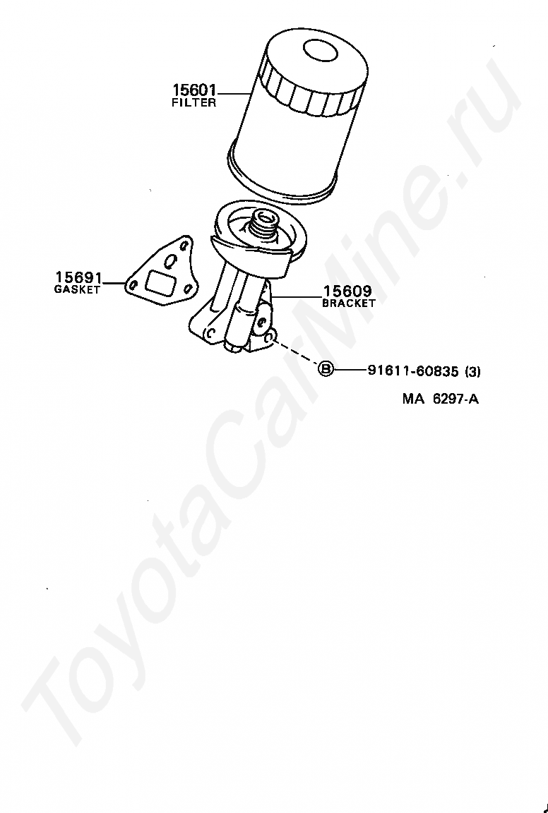 Масляный фильтр TOYOTA HIACE VAN,COMMUTER, 1986/12 - 1987/08, 2,2 литра, V(MODEL MARK), STANDARD TYPE, YH66, механика, МКПП, 5 скоростей