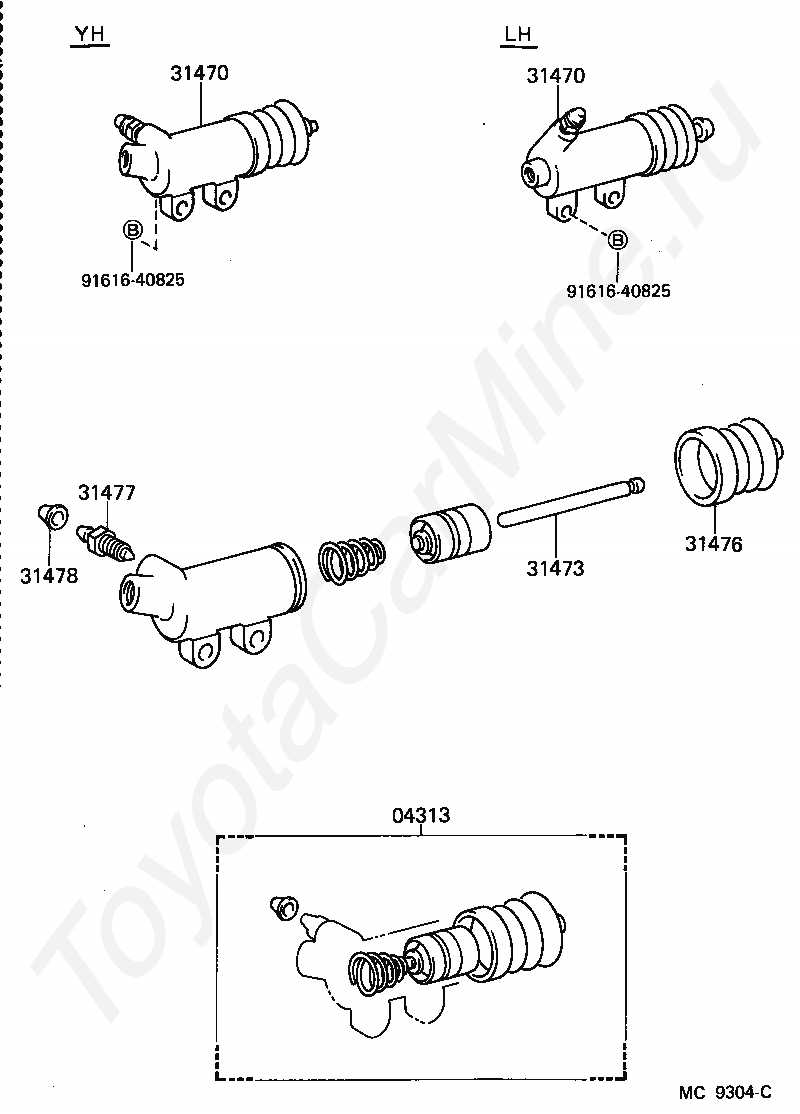 Цилиндр сцепления TOYOTA HIACE VAN,COMMUTER, 1986/12 - 1987/08, 2,2 литра, V(MODEL MARK), STANDARD TYPE, YH66, механика, МКПП, 5 скоростей