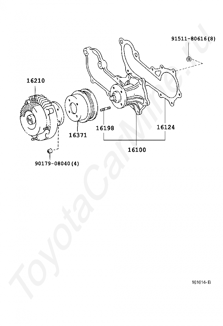 Водяная помпа TOYOTA HILUX, 1997/08 - 2001/08, 2,7 литра, CBR, DOHC, DELUX SPECIFICATION, RZN149, механика