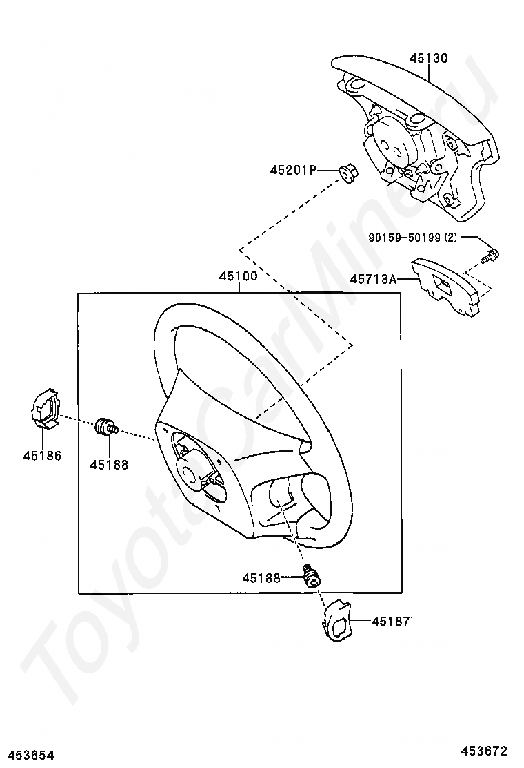 Руль TOYOTA KLUGER, 2003/08 - 2007/05, 3,3 литра, 24 клапана, DOHC, EFI, фургон, MCU28, АКПП, 5 скоростей