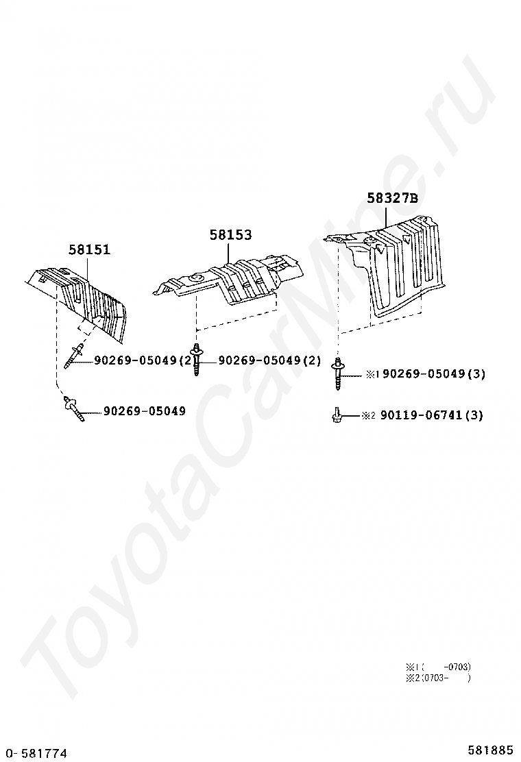 FLOOR INSULATOR TOYOTA KLUGER, 2003/08 - 2007/05, 3,3 литра, 24 клапана, DOHC, EFI, фургон, MCU28, АКПП, 5 скоростей