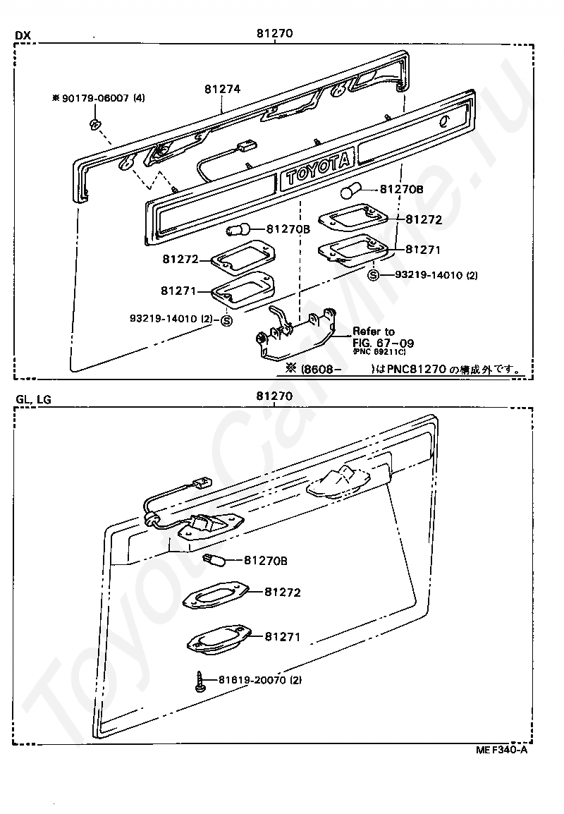 REAR LICENSE PLATE LAMP TOYOTA MARK 2, 1984/11 - 1988/08, 2 литра, EFI, фургон, LG TYPE, GX70, механика, МКПП, 5 скоростей
