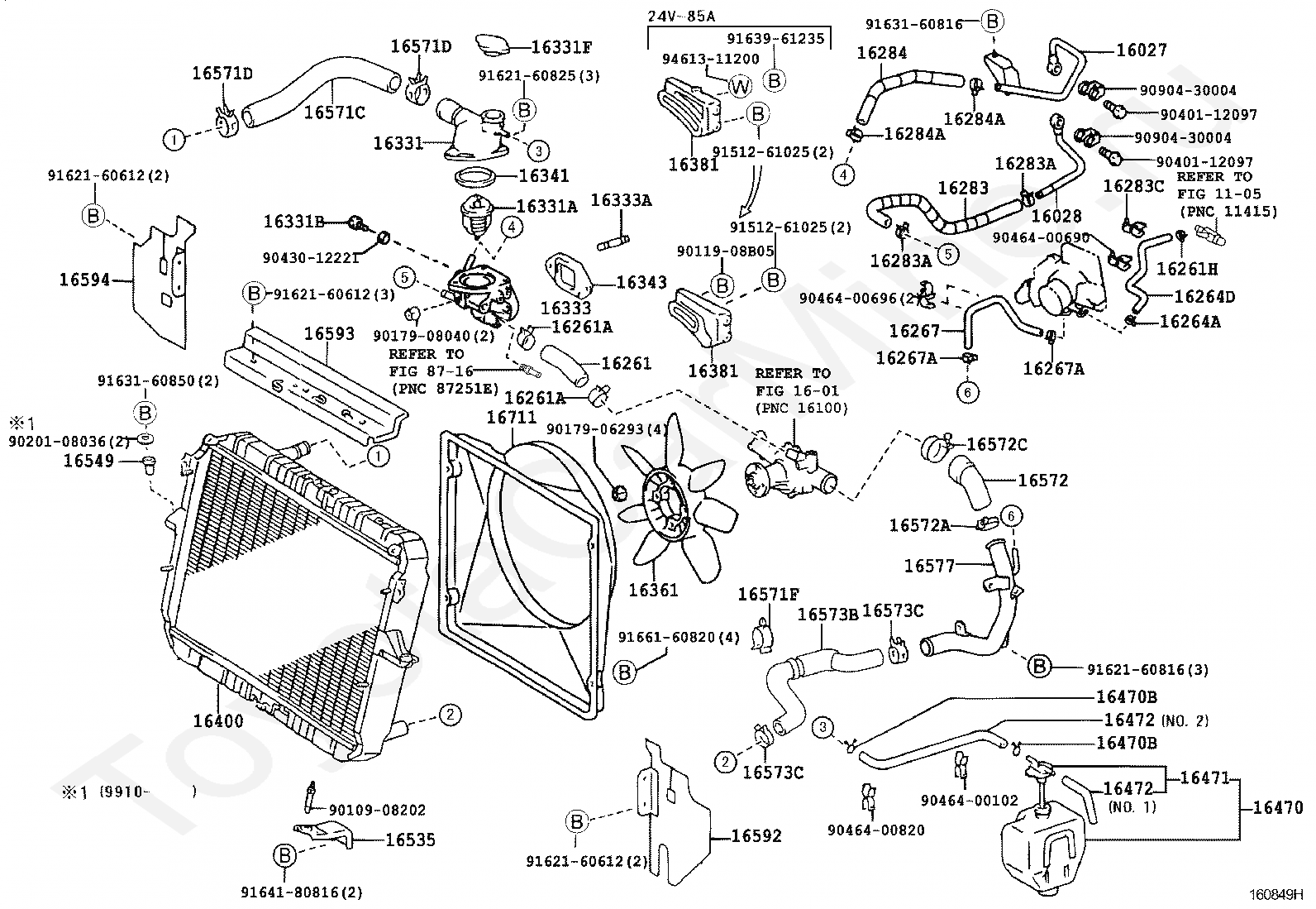 CLAMP OR CLIP, HOSE(FOR RADIATOR OUTLET NO.1)