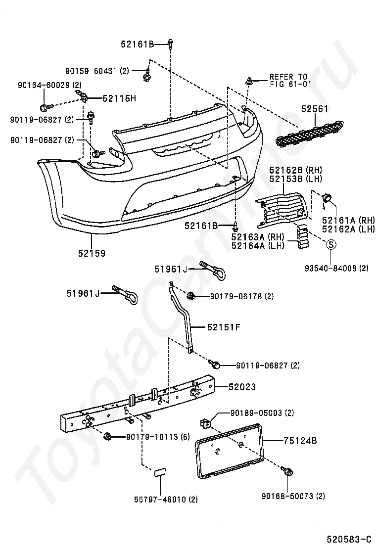 RETAINER, REAR BUMPER, UPPER CENTER