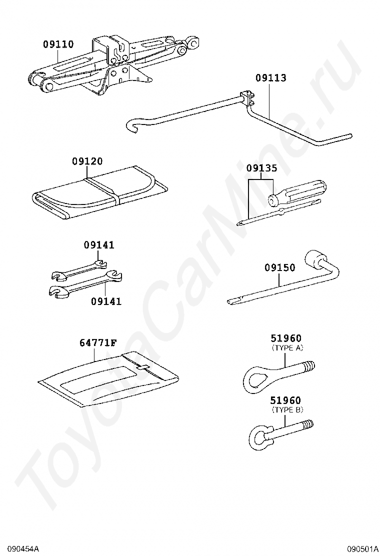 Набор инструментов TOYOTA NOAH, 2010/04 - 2026, 2 литра, 16 клапанов, DOHC, EFI, S TYPE, ZRR70, автомат, бесступенчатая АКПП