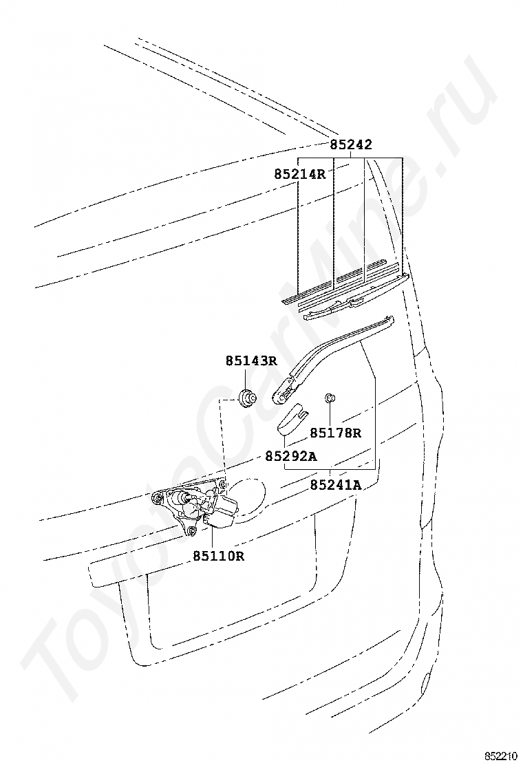 Стеклоочиститель задний TOYOTA NOAH, 2010/04 - 2026, 2 литра, 16 клапанов, DOHC, EFI, S TYPE, ZRR70, автомат, бесступенчатая АКПП