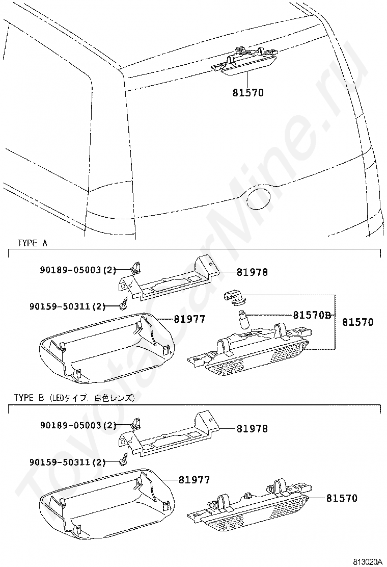 Центральный стоп-сигнал TOYOTA NOAH/VOXY, 2004/08 - 2007/06, 2 литра, 16 клапанов DOHC, EFI, TRANS-X TYPE, AZR60, вариаторная АКПП, на руле