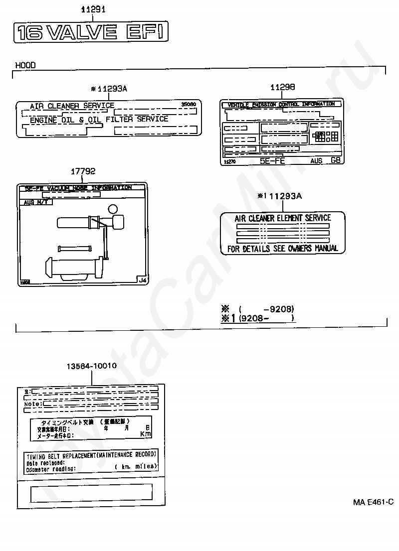 Таблички TOYOTA PASEO, 1991/04 - 1995/08, 1,5 литра, 16 клапанов, DOHC, EFI, EL44, механика