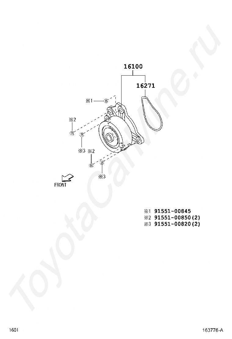Водяная помпа TOYOTA PASSO, 2006/12 - 2010/02, 1 литр, 12 клапанов DOHC, EFI, RACY TYPE, KGC15, автомат, АКПП, 4 ступени, на руле