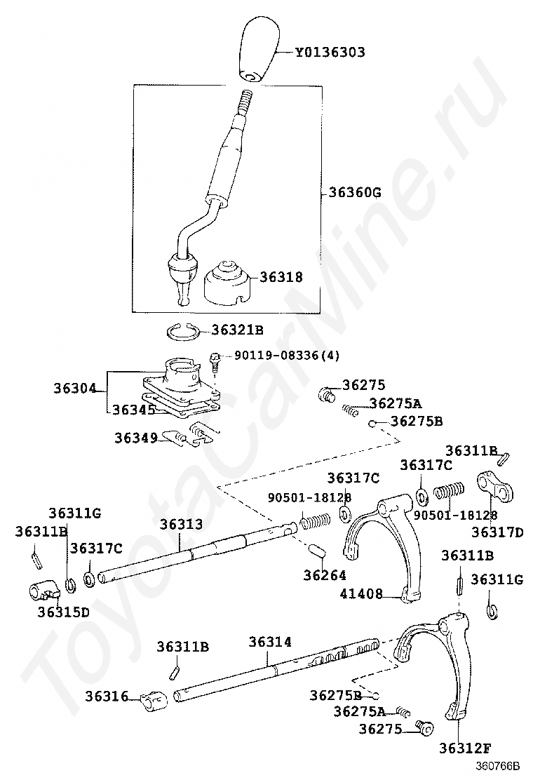 SHAFT, TRANSFER HIGH AND LOW SHIFT FORK