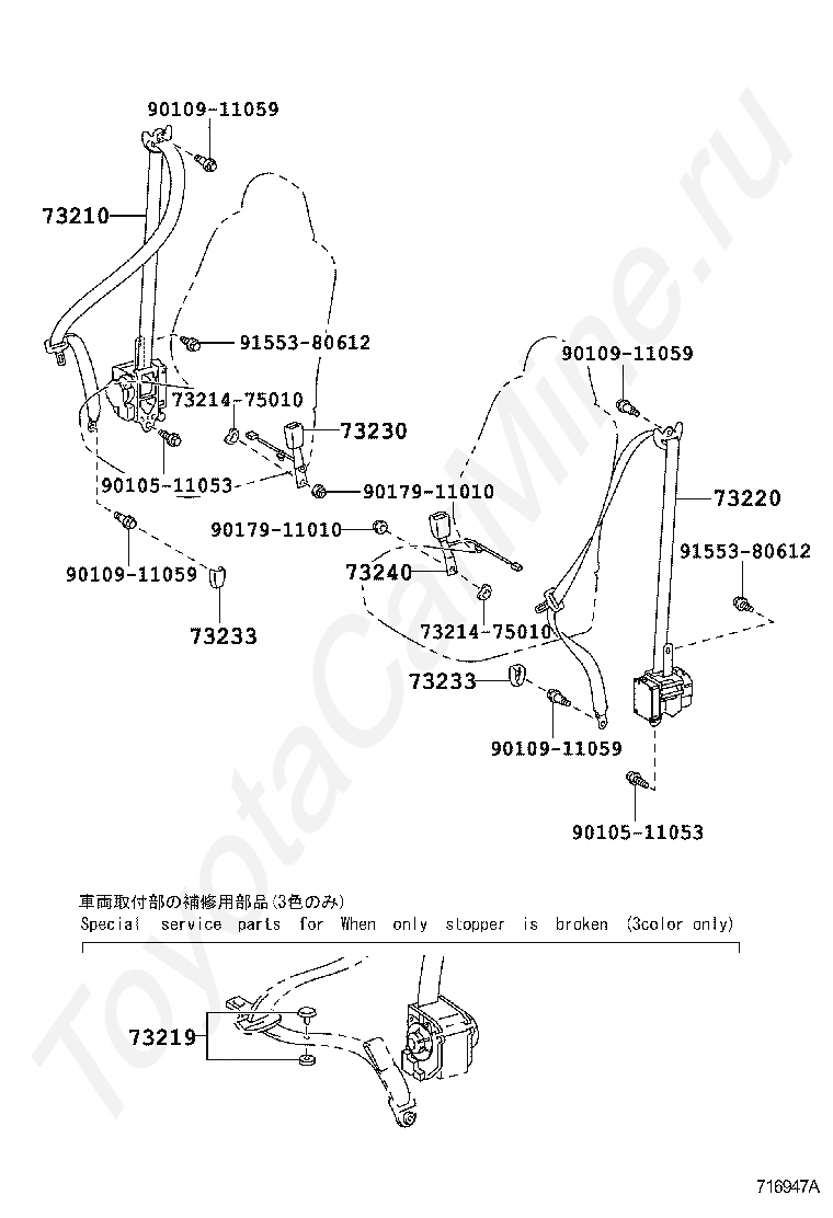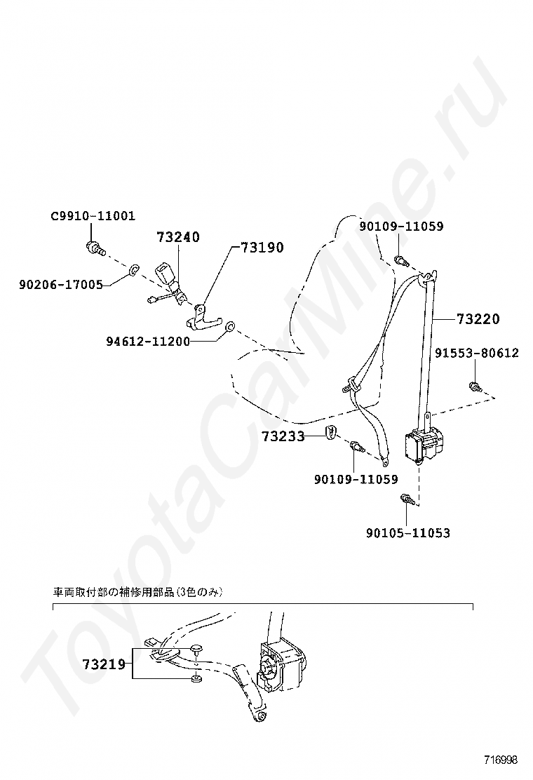 BELT ASSY, REAR NO.1 SEAT, OUTER RH