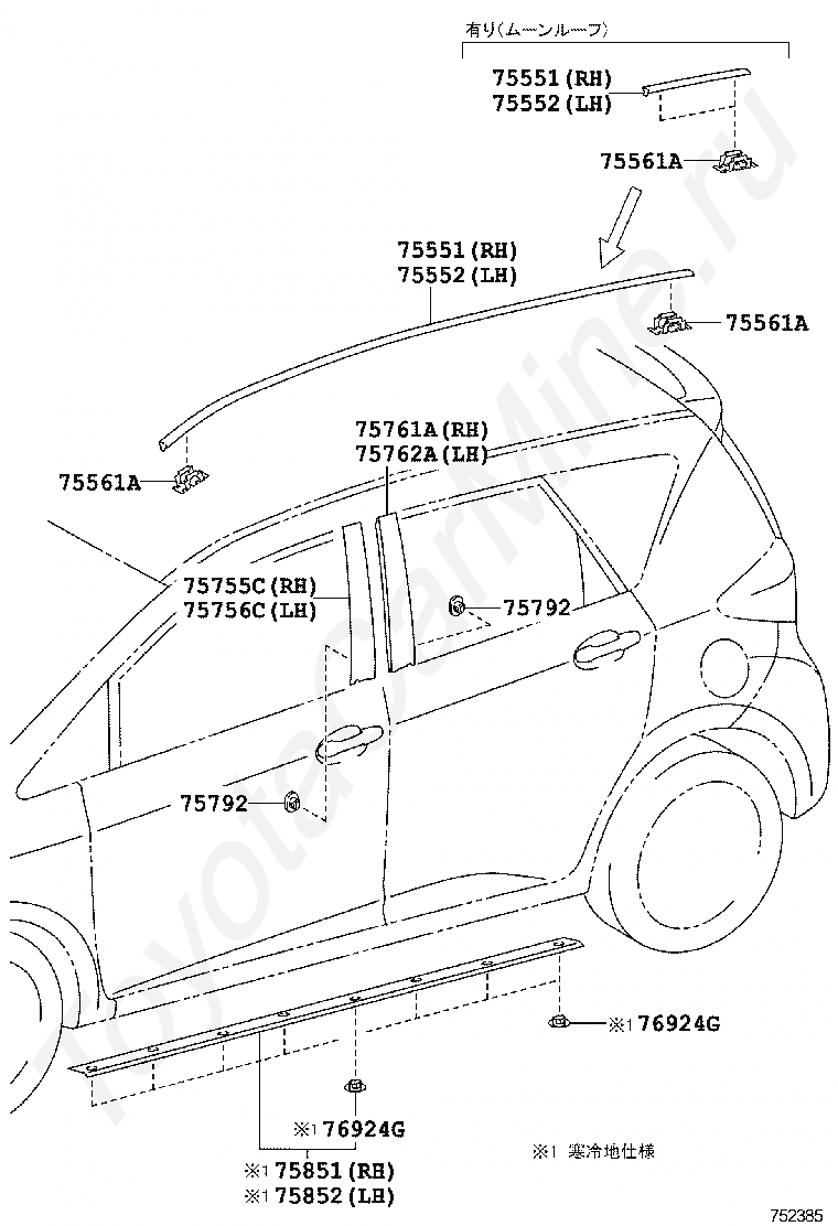 MOULDING, REAR DOOR WINDOW FRAME, FRONT LH