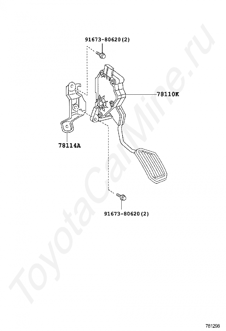 Педаль газа TOYOTA RACTIS, 2014/05 - 2016/07, 1,5 литра, 16 клапанов DOHC, EFI, GRAMS, NCP120, вариатор
