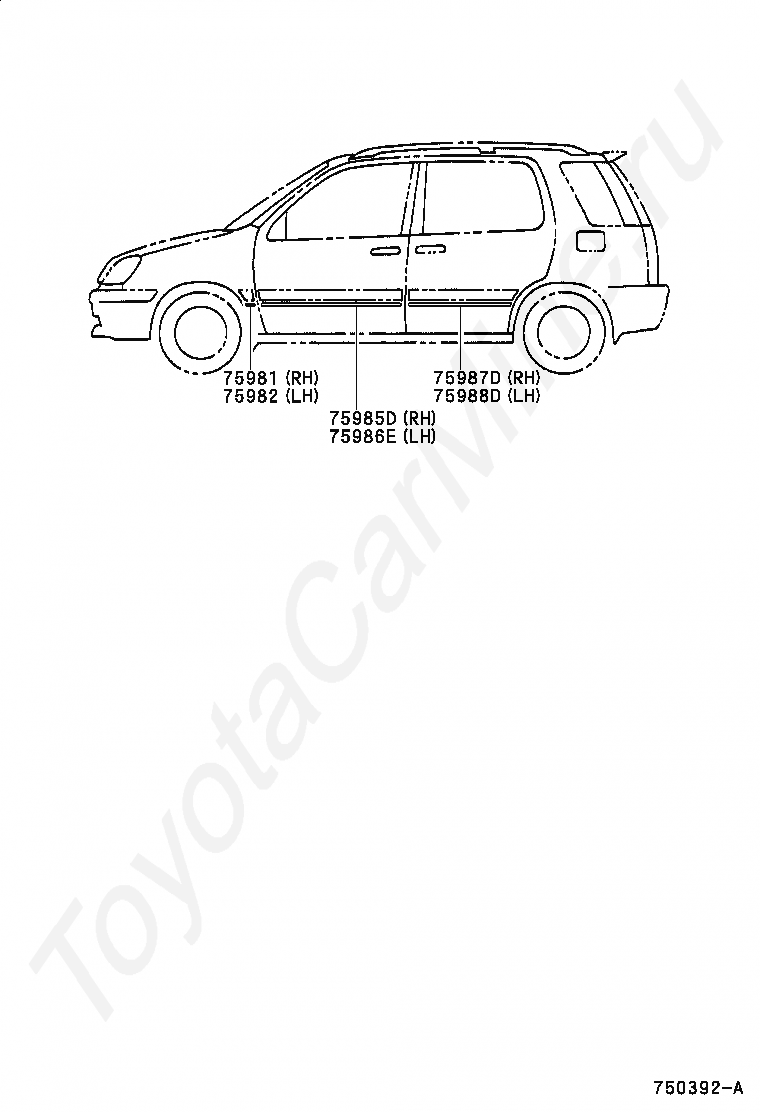 BODY STRIPE TOYOTA RAUM, 1997/05 - 2003/04, 1,5 литра, 16 клапанов, DOHC, EFI, EXZ10, автомат