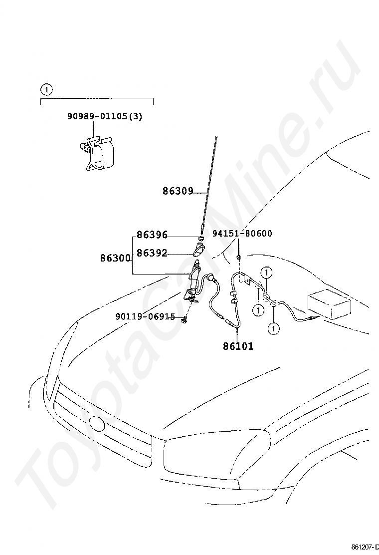 Антенна TOYOTA RAV4, 2003/07 - 2005/11, 2,4 литра, 16 клапанов DOHC, EFI, ACA23, механика