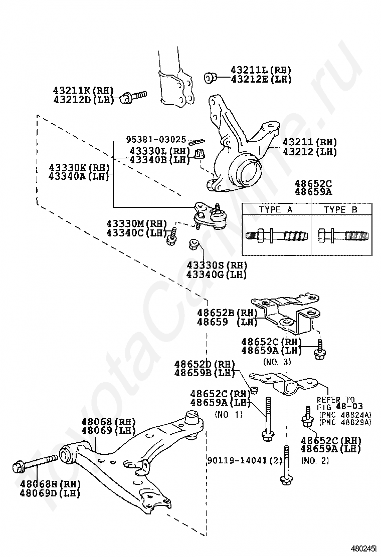 ARM SUB-ASSY, FRONT SUSPENSION, LOWER NO.1 RH