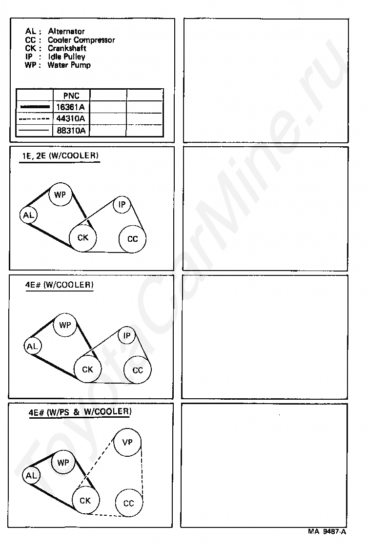 Ремень TOYOTA STARLET, 1989/12 - 1998/03, 1,3 литра, 12 клапанов, S TYPE, EP81, механика, МКПП, 5 скоростей