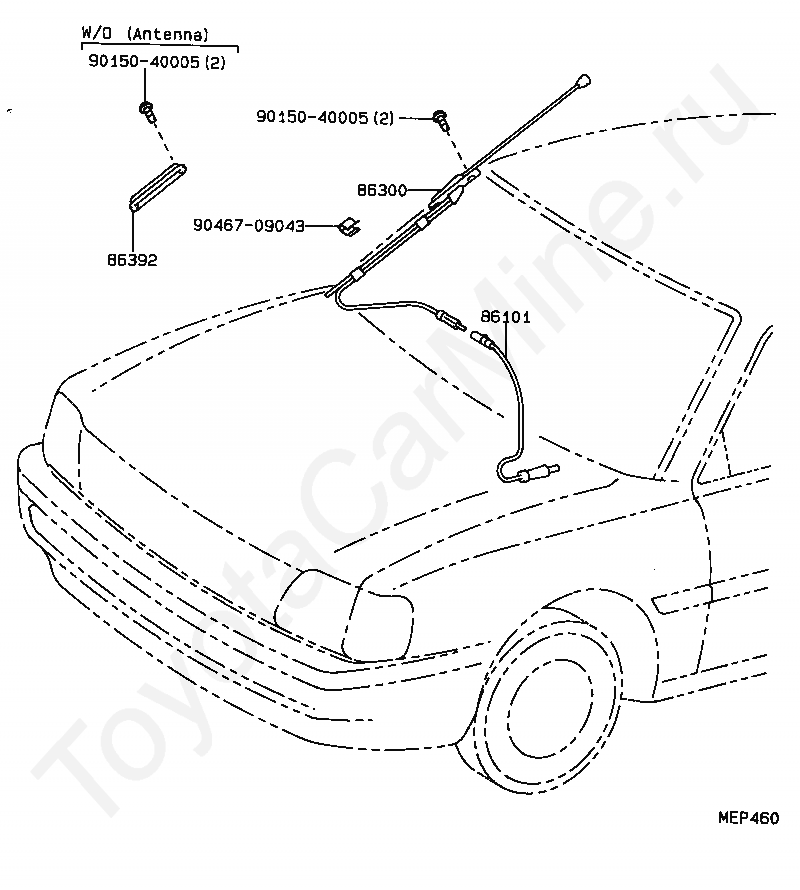Антенна TOYOTA STARLET, 1989/12 - 1998/03, 1,3 литра, 12 клапанов, S TYPE, EP81, механика, МКПП, 5 скоростей