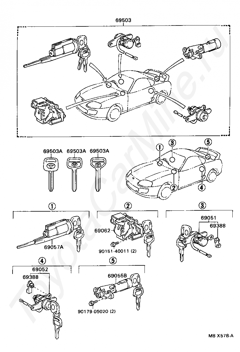 CYLINDER & KEY SET, DOOR LOCK, LH
