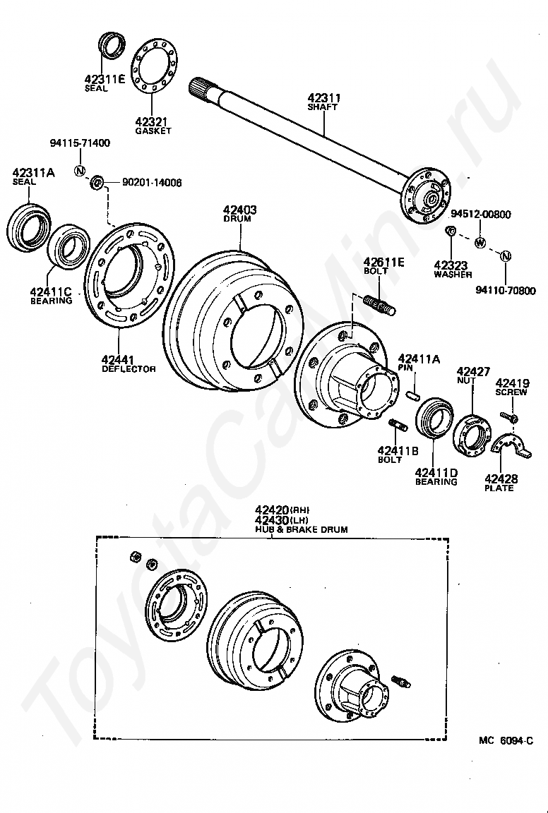 HUB (OR SHAFT) & BRAKE DRUM REAR AXLE, LH
