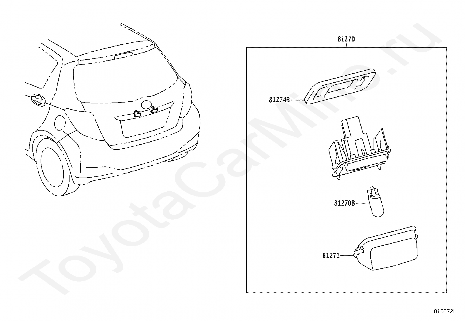 REAR LICENSE PLATE LAMP TOYOTA VITZ, 2017/01 - 2020/01, 1 литр, 12 клапанов DOHC, EFI, JEWL, KSP130, вариатор