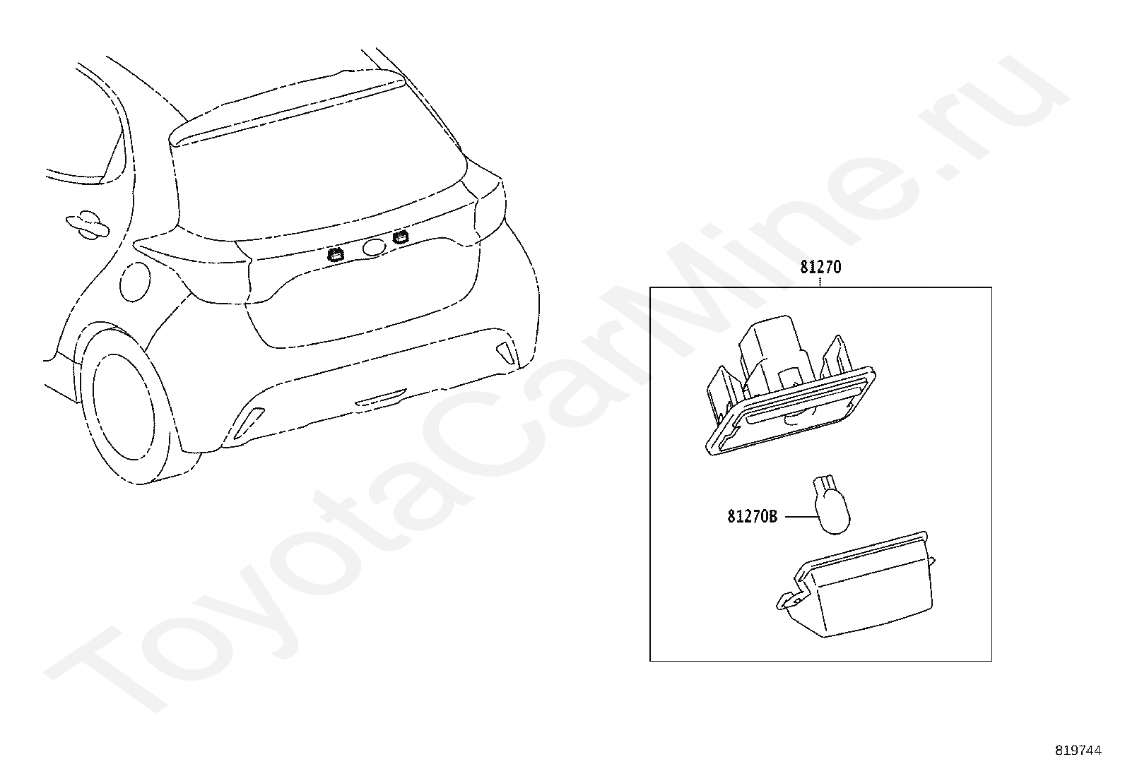REAR LICENSE PLATE LAMP TOYOTA YARIS, 2020/05 - 2026, 1500CC 12-VALVE DOHC, N(MODEL MARK), MXPA10, механика, МКПП, 6 скоростей