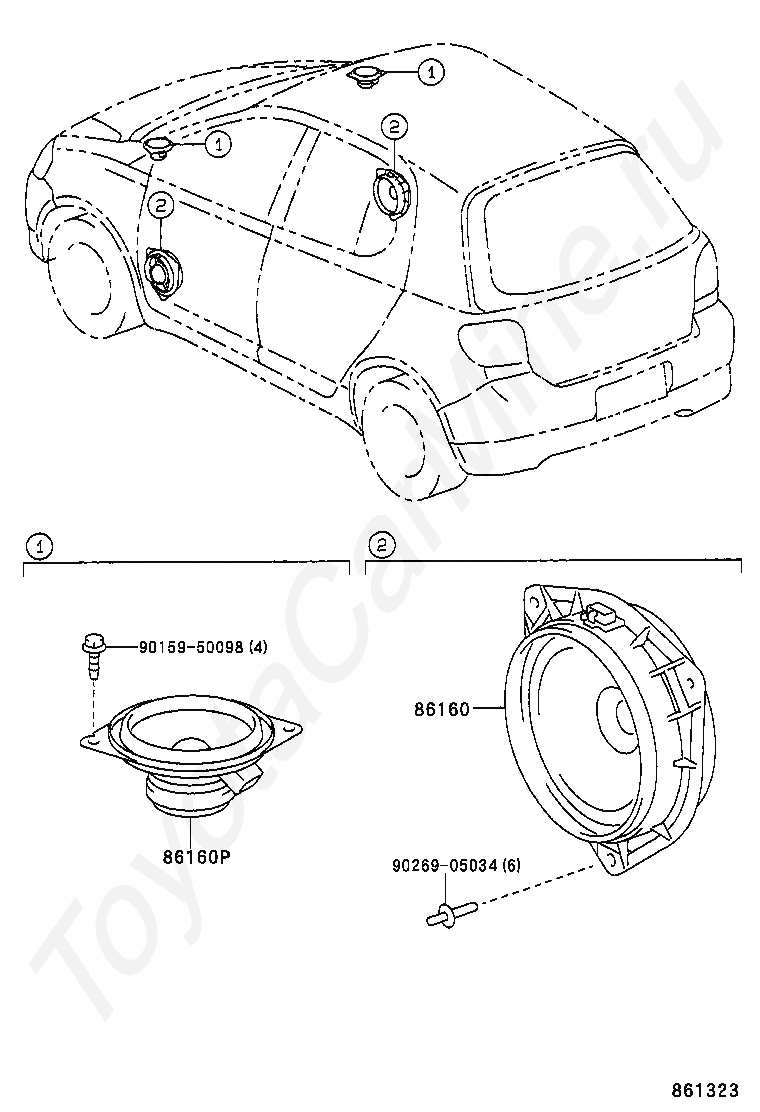 Аудиосистема TOYOTA YARIS (FRP), 2003/02 - 2005/11, 1,4 литра, турбо-дизель, TERRA TYPE( -0212),STANDARD TYPE(0212- ), NLP10, механика, МКПП, 5 скоростей