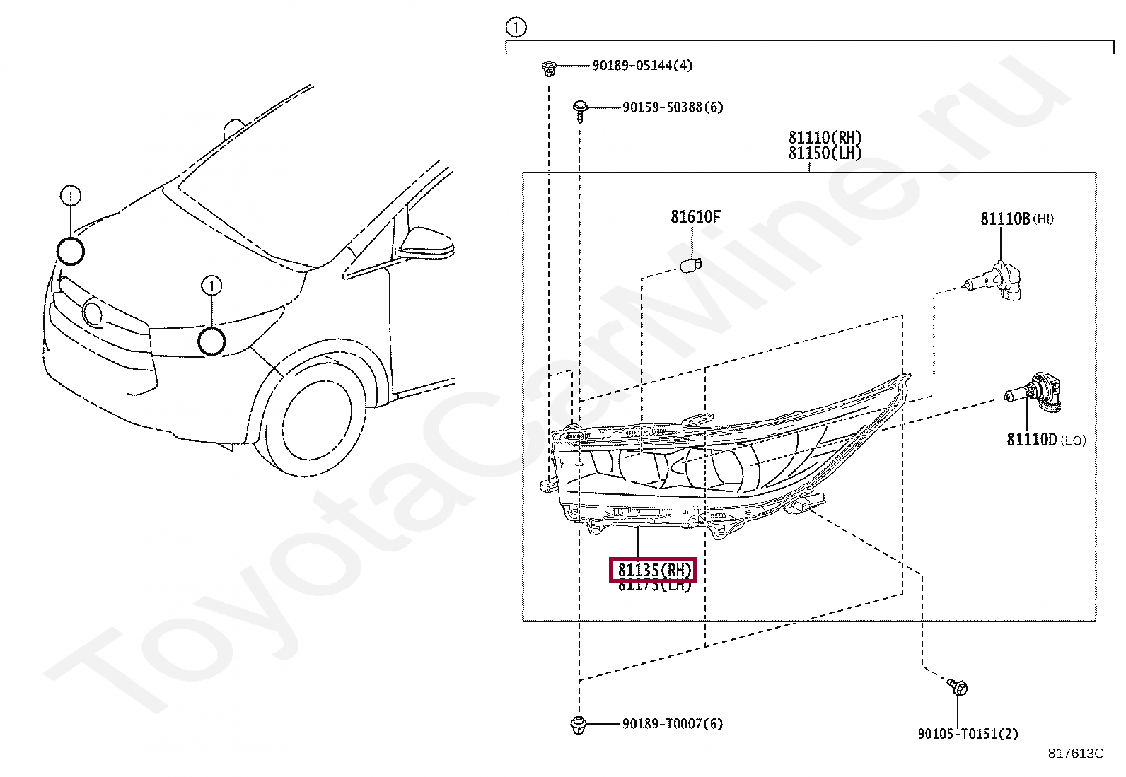 Название по каталогу: UNIT ASSY, HEADLAMP, RH