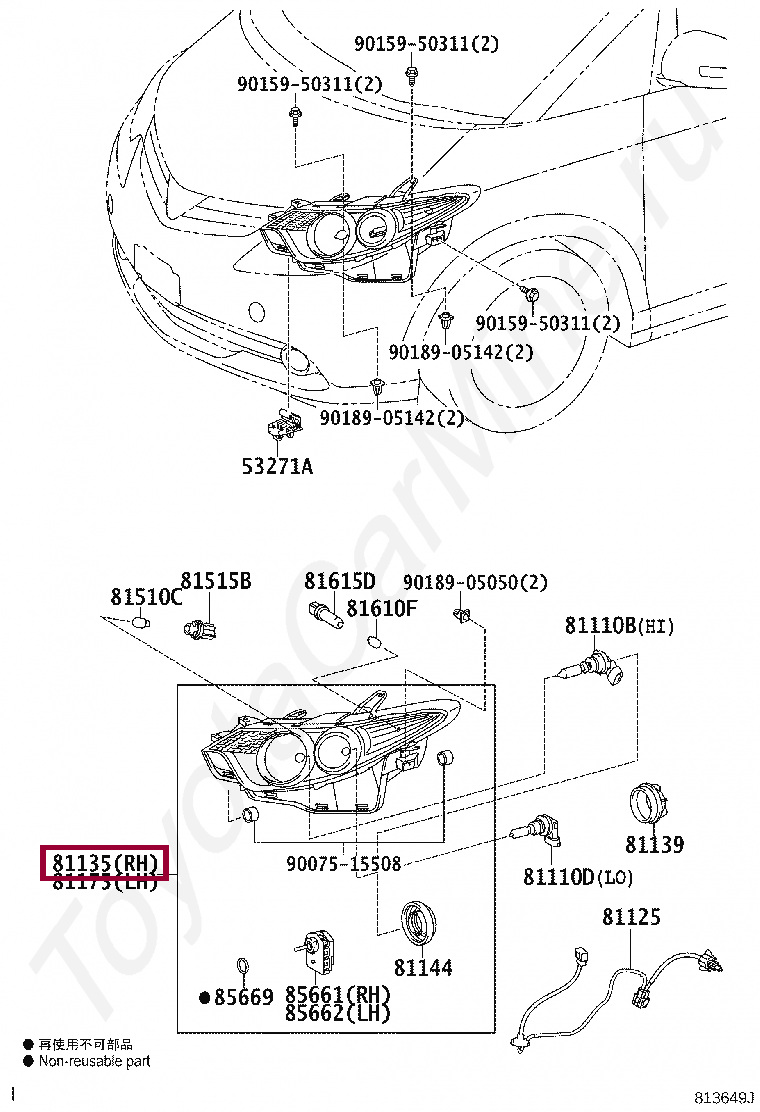 Название по каталогу: UNIT ASSY, HEADLAMP, RH
